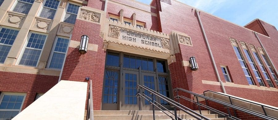 Once known as the “Pride of the Eastside”, Douglass High School was a center of creativity 1934–1955. It remains the oldest school building still in existence in Oklahoma City and is listed on the National Registry of Historic Sites. The predominantly African-American high school was repurposed as elementary and middle schools through the mid-90s and then sat abandoned for twenty-five years until finding new life and transforming into The Auditorium at The Douglass, a state of the art event center.