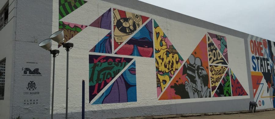 Similarly, the Tulsa Office of Film, Music, Arts & Culture (TFMAC) has been working with Tulsa-based art group Clean Hands, to develop murals around the city. A wall at the southwest corner of 4th and Cheyenne (pictured above), attached to the Mayo Motor Inn Parking Garage, was selected for a mural. With approval from The Mayo who owns that building, TFMAC and Clean Hands finalized a concept for this particular mural. The mural was completed in November 2015 and celebrates Tulsa’s historically rich contributions to the arts including film and music.