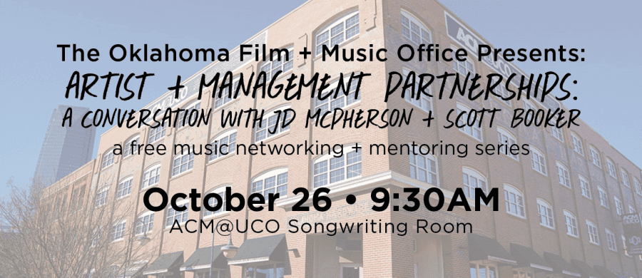 “Artist + Management Partnerships: A Conversation with JD McPherson + Scott Booker” will take place in the Songwriting Room on the first floor of ACM@UCO, located at 25 S. Oklahoma Ave. in Oklahoma City, kicking off at 9:30 a.m. with a light breakfast. The conversation will begin at 10:00 a.m. followed by a dynamic networking opportunity for professionals, students and enthusiasts involved in the film and music industries. This event will be formatted in a masterclass-type setting and is free and open to the public. Due to limited seating, please RSVP by October 25.