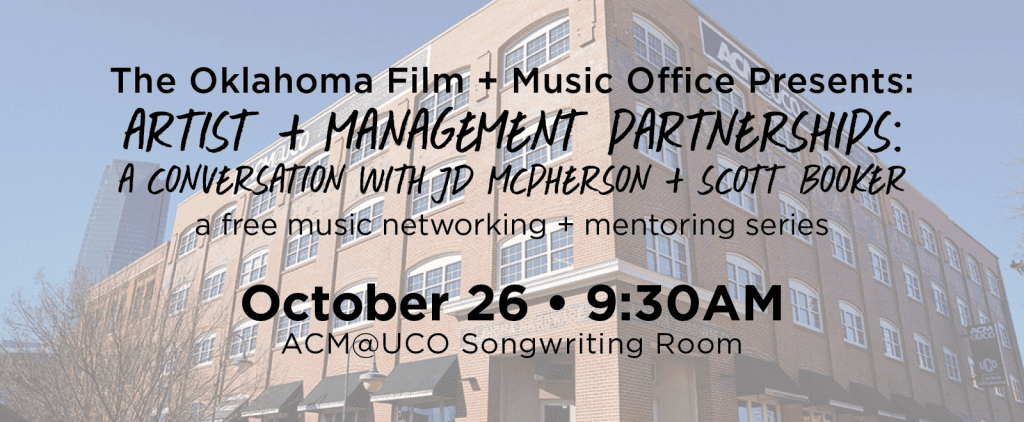 “Artist + Management Partnerships: A Conversation with JD McPherson + Scott Booker” will take place in the Songwriting Room on the first floor of ACM@UCO, located at 25 S. Oklahoma Ave. in Oklahoma City, kicking off at 9:30 a.m. with a light breakfast. The conversation will begin at 10:00 a.m. followed by a dynamic networking opportunity for professionals, students and enthusiasts involved in the film and music industries. This event will be formatted in a masterclass-type setting and is free and open to the public. Due to limited seating, please RSVP by October 25.